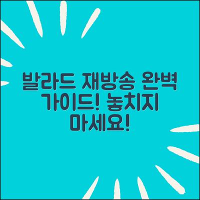 5가지 재방송 시청 팁 재방송을 최대한 활용하기 위해, 우리들의 발라드 재방송 시청 시 유의해야 할 다섯 가지 팁을 소개합니다. 이 정보를 활용하여 놓친 방송을 놓치지 않고, 즐거운 시청 경험을 누려보세요! 우리들의 발라드 재방송은 매주 정해진 시간에 방영됩니다. 이를 통해 본방송을 놓친 시청자들도 편리하게 프로그램을 시청할 수 있습니다. 재방송 일정을 미리 확인하는 것이 중요합니다. 날짜 시간 … Read more