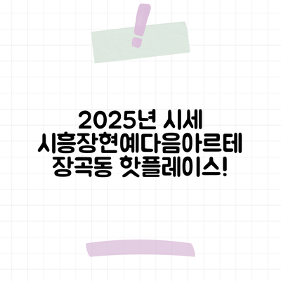 경기도 시흥시 장곡동에 위치한 시흥장현예다음아르테 아파트의 2025년 9월 시세는 다양한 요인에 따라 변화할 것입니다. 이 아파트 단지는 최근 실거래가를 바탕으로 향후 시세 예측을 진행하고 있으며, 시장의 동향, 인근 지역 개발 상황 및 정부 정책 등이 주요한 변수가 될 것입니다.