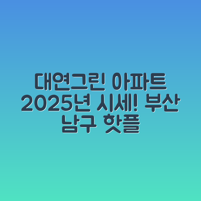부산시 남구 대연동의 대연그린 아파트에 대한 투자를 고민하고 계신가요? 그렇다면 이 아파트의 시세 변화를 주목할 필요가 있습니다. 2025년 9월 시세를 예측하는 것은 이에 대한 중요한 포인트가 될 수 있습니다.