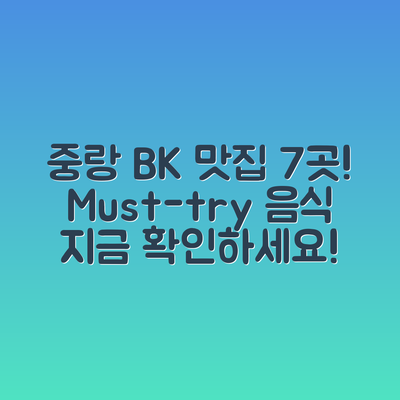 이렇게 중랑 BK의 맛집 투어는 단순한 식사가 아니라, 여러분의 소중한 추억을 담는 시간이 될 거예요. 한번 도전해보세요!